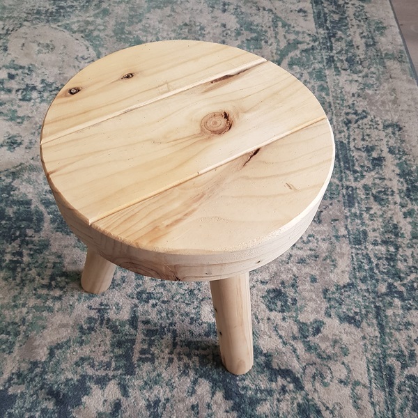 Dit leuke krukje is gemaakt van oude palletbalken. De zitting is ca. 4,5 cm dik wat het krukje een robuust en massief aanzien geeft. Ook de 3 poten zijn gedraaid van oude balken. Hier en daar een oud spijkergat verraad het vorige bestaan. Door de warme kleur en de mooie tekening in het hout goed bruikbaar als decoratief item om bijvoorbeeld een bloemenvaas op te zetten of als ondersteuning van een grote plant in pot. Het hout is niet bewerkt.