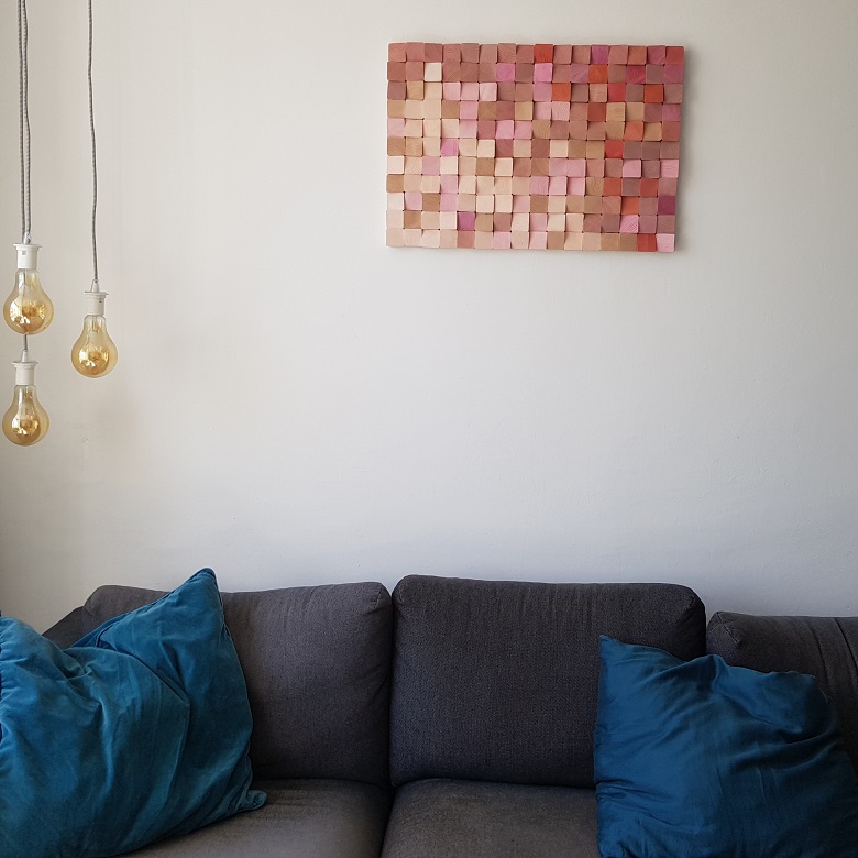 3D handgemaakt houten wandversiering zacht rood blokjes.
